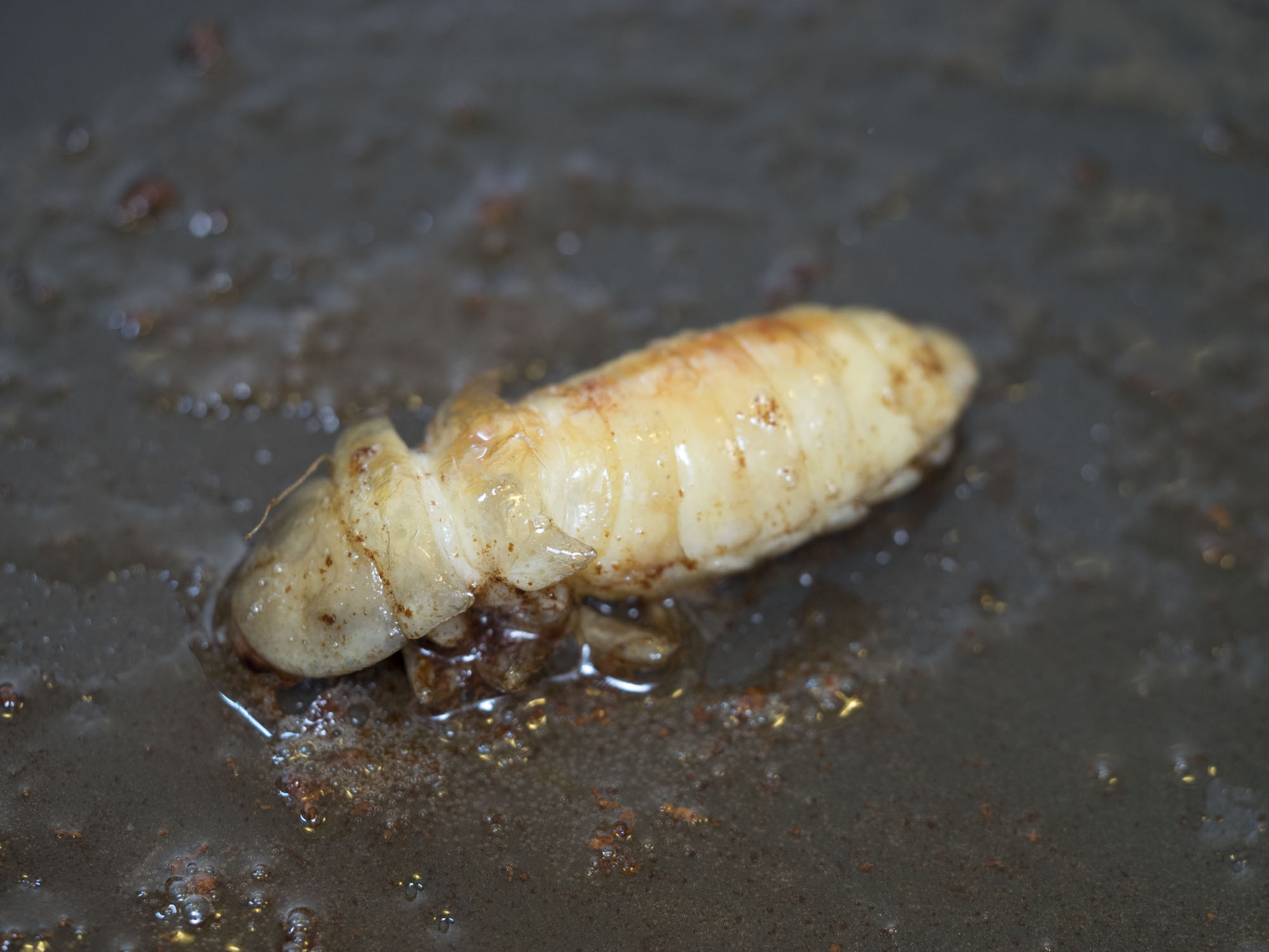 香ばしさが幼虫より強く、甲虫でも食感はとてもよい。揚げなくてもサクサクしている。