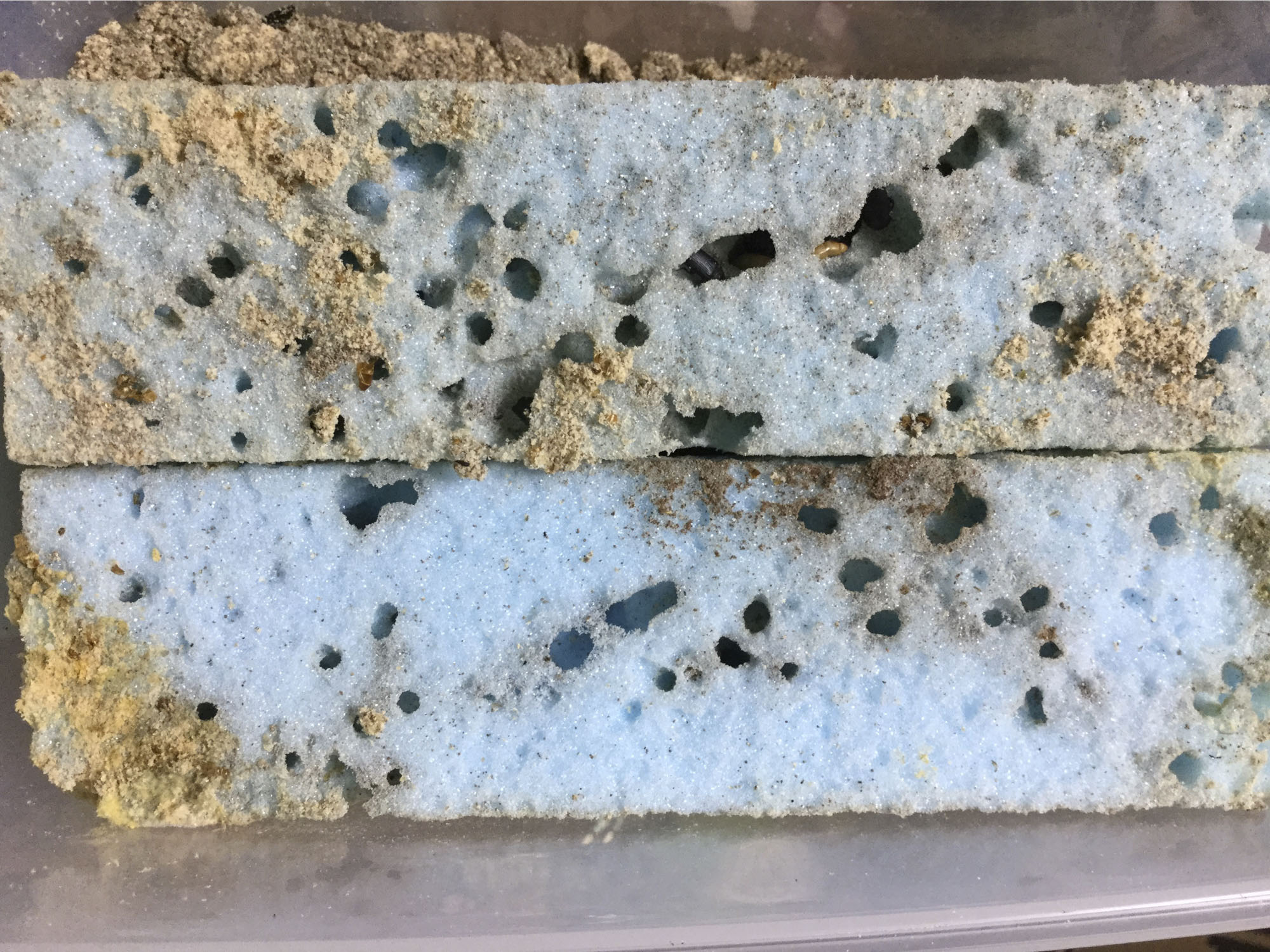 食ってますね。底に水色の粉が溜まっているので
