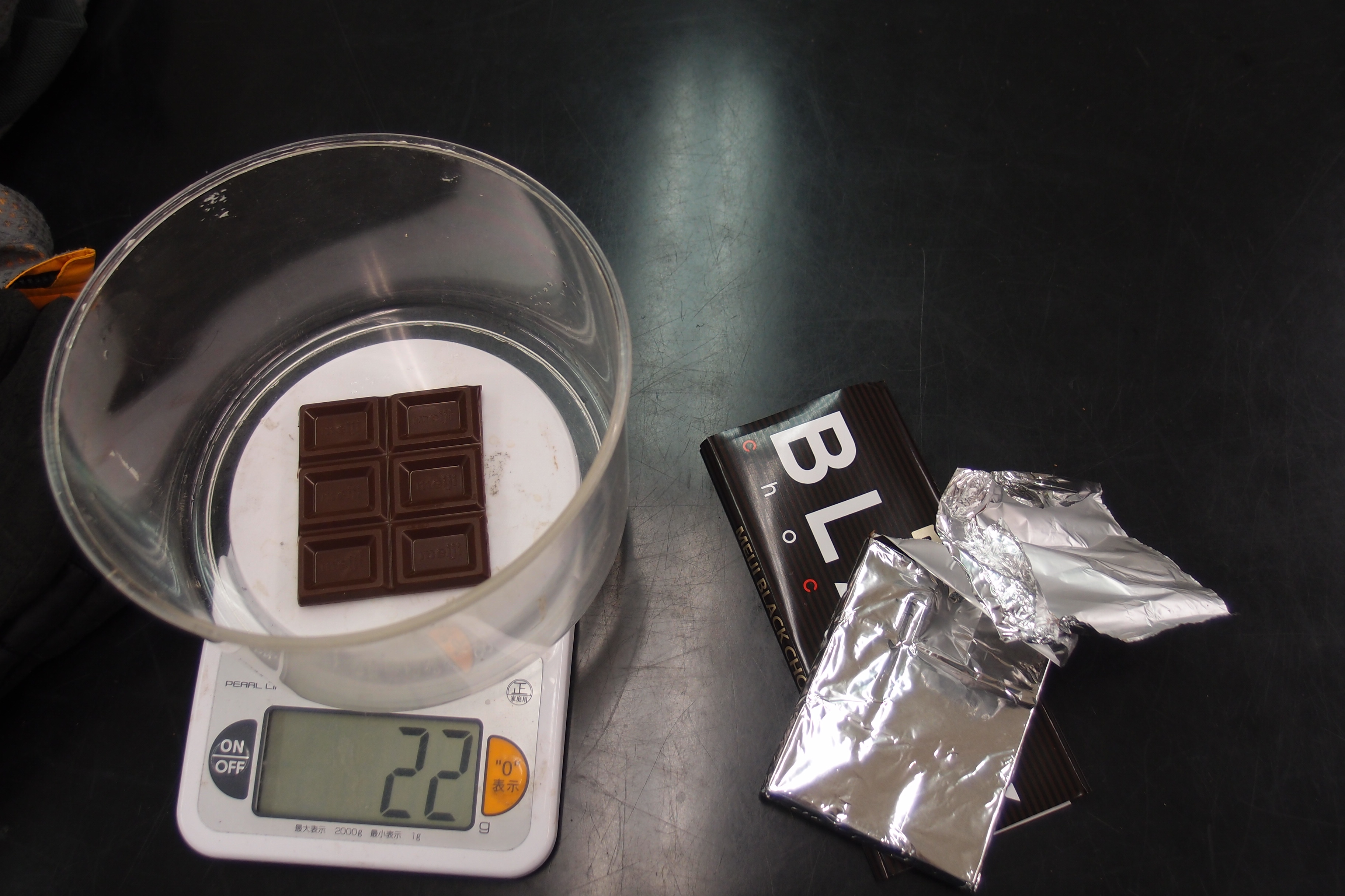 そして、22gのチョコと水を入れ、開始です。