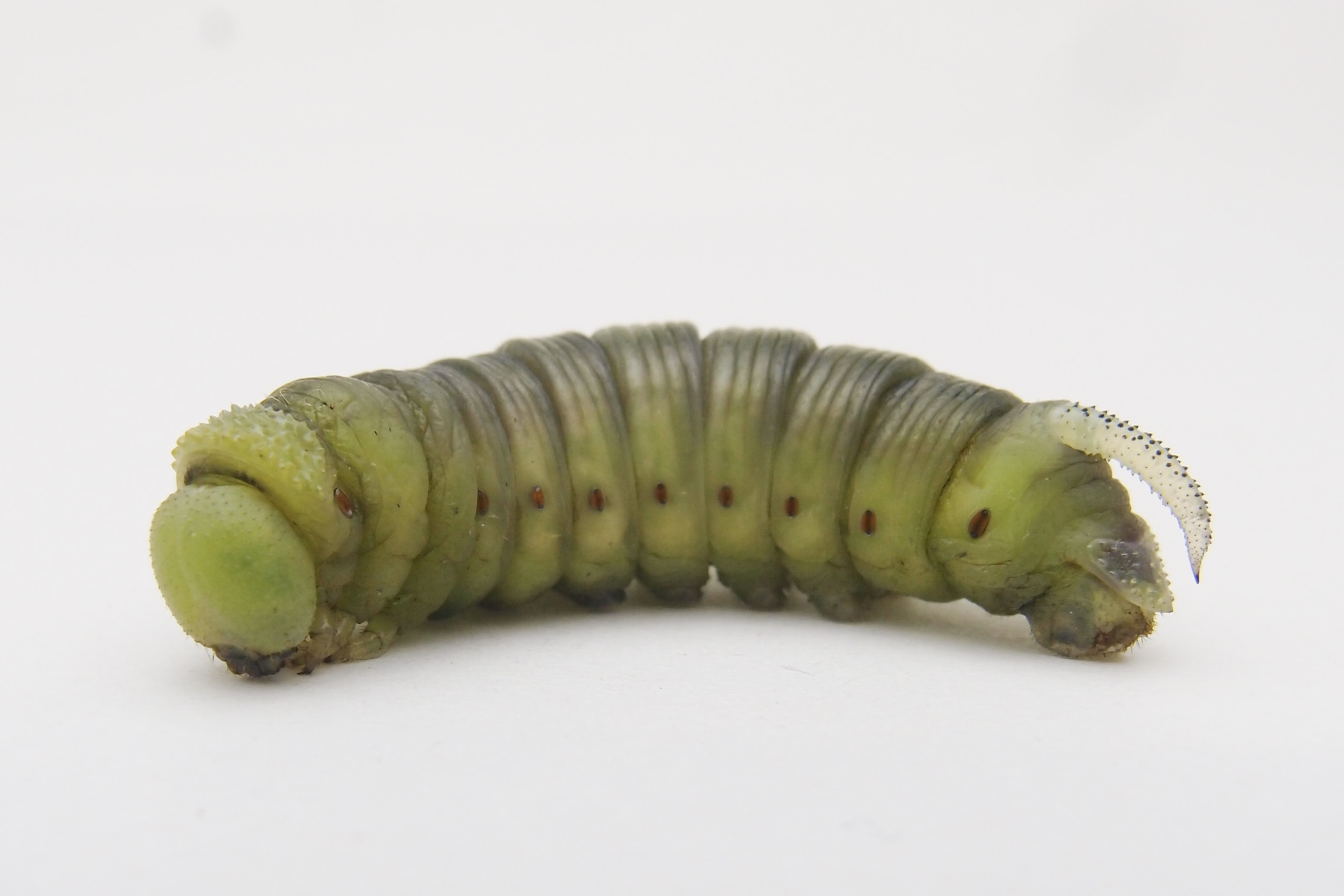 前蛹になって縮んでしまいましたが、尻の一本角はまさにスズメガ。
