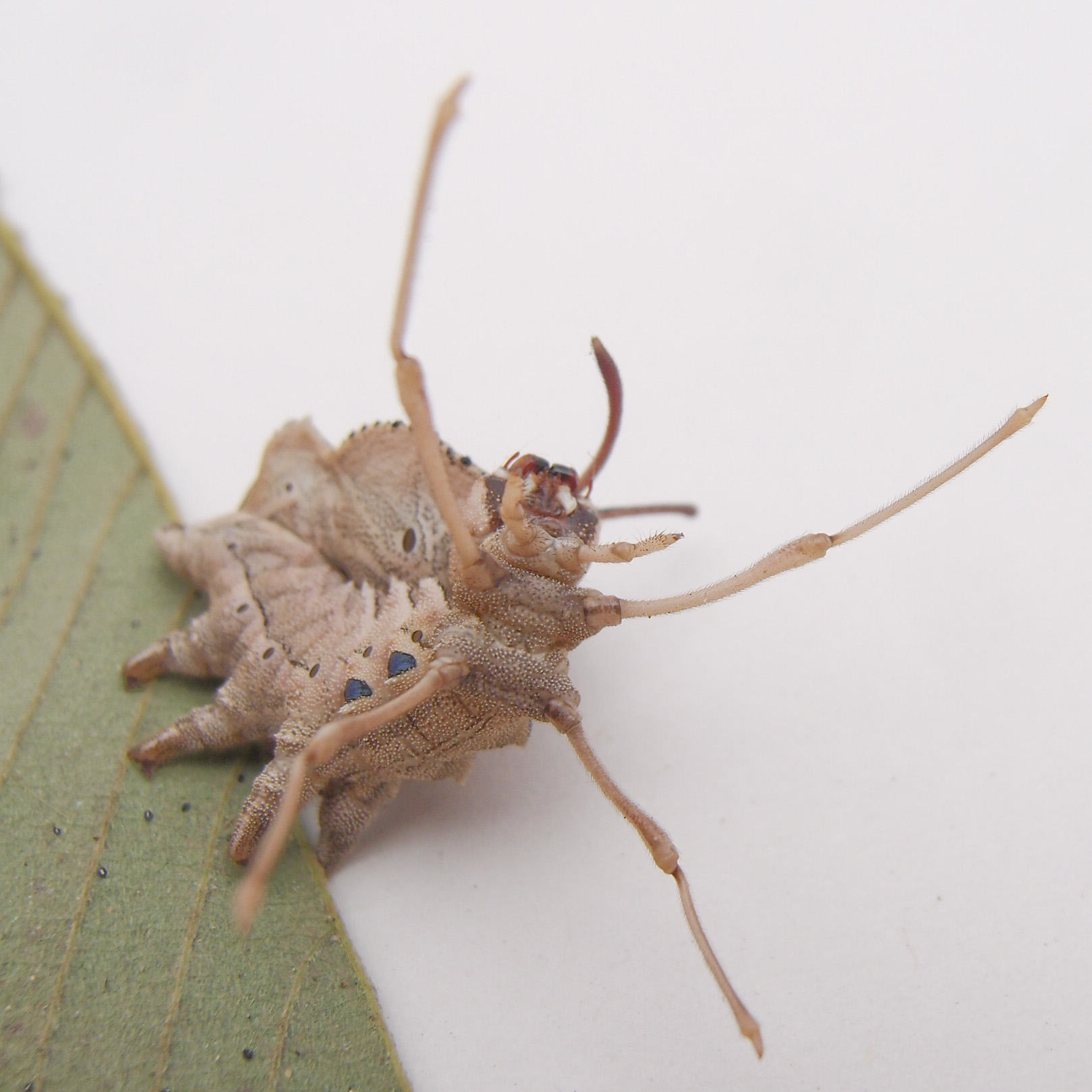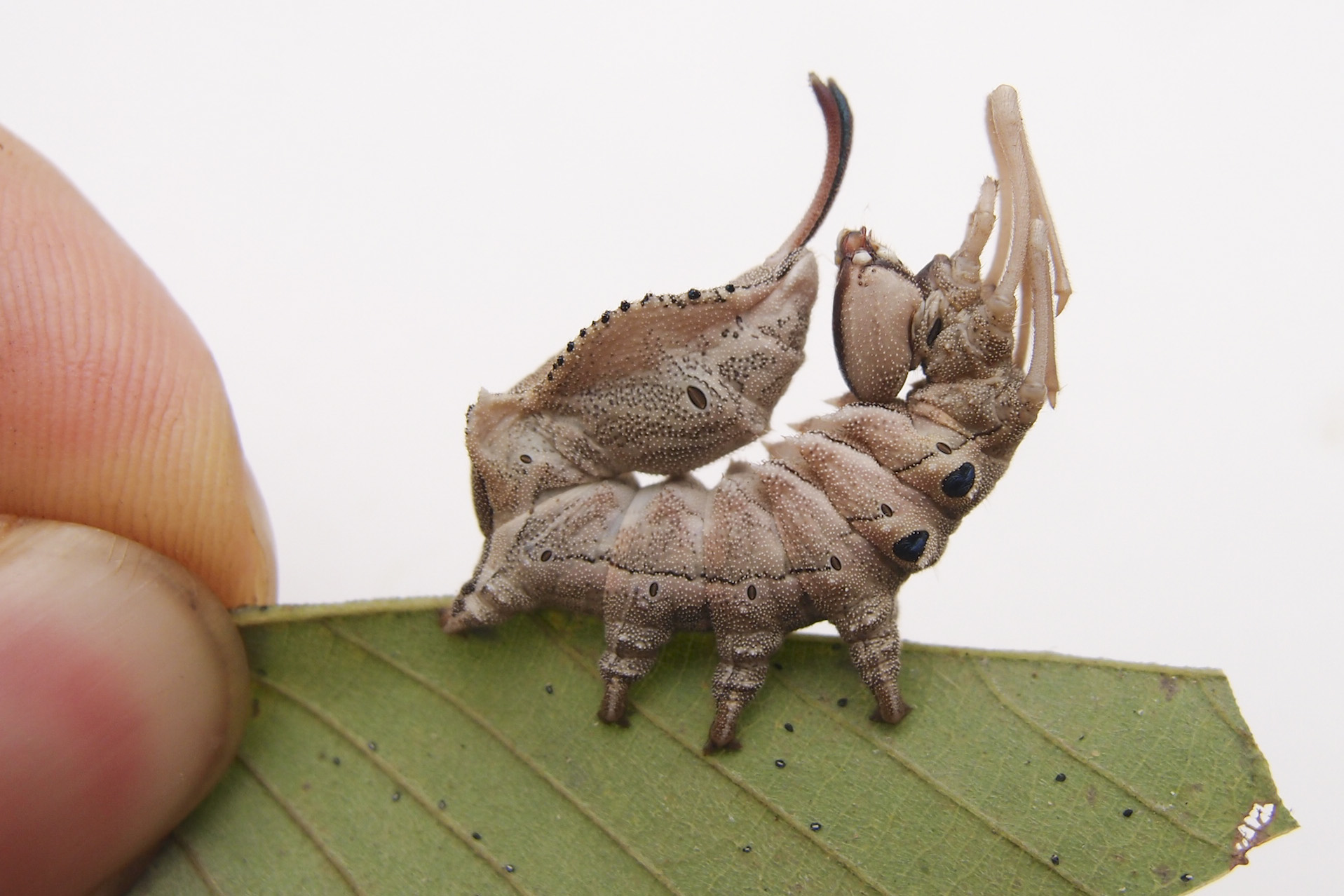 長い腕と頭はクモに擬態しているのではないか、と思えてきます。
