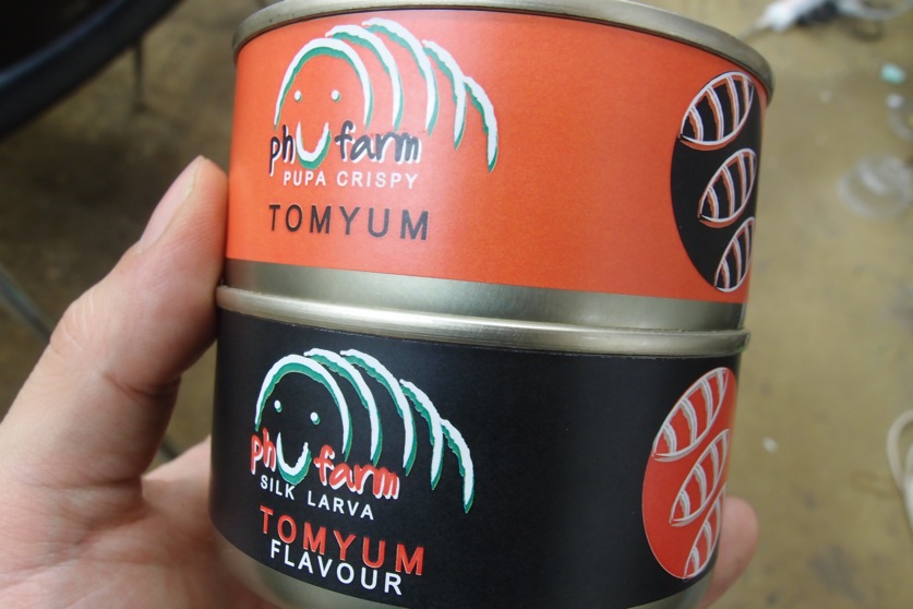 タイの養殖エリサンがトムヤムクン味の缶詰として売られていました。