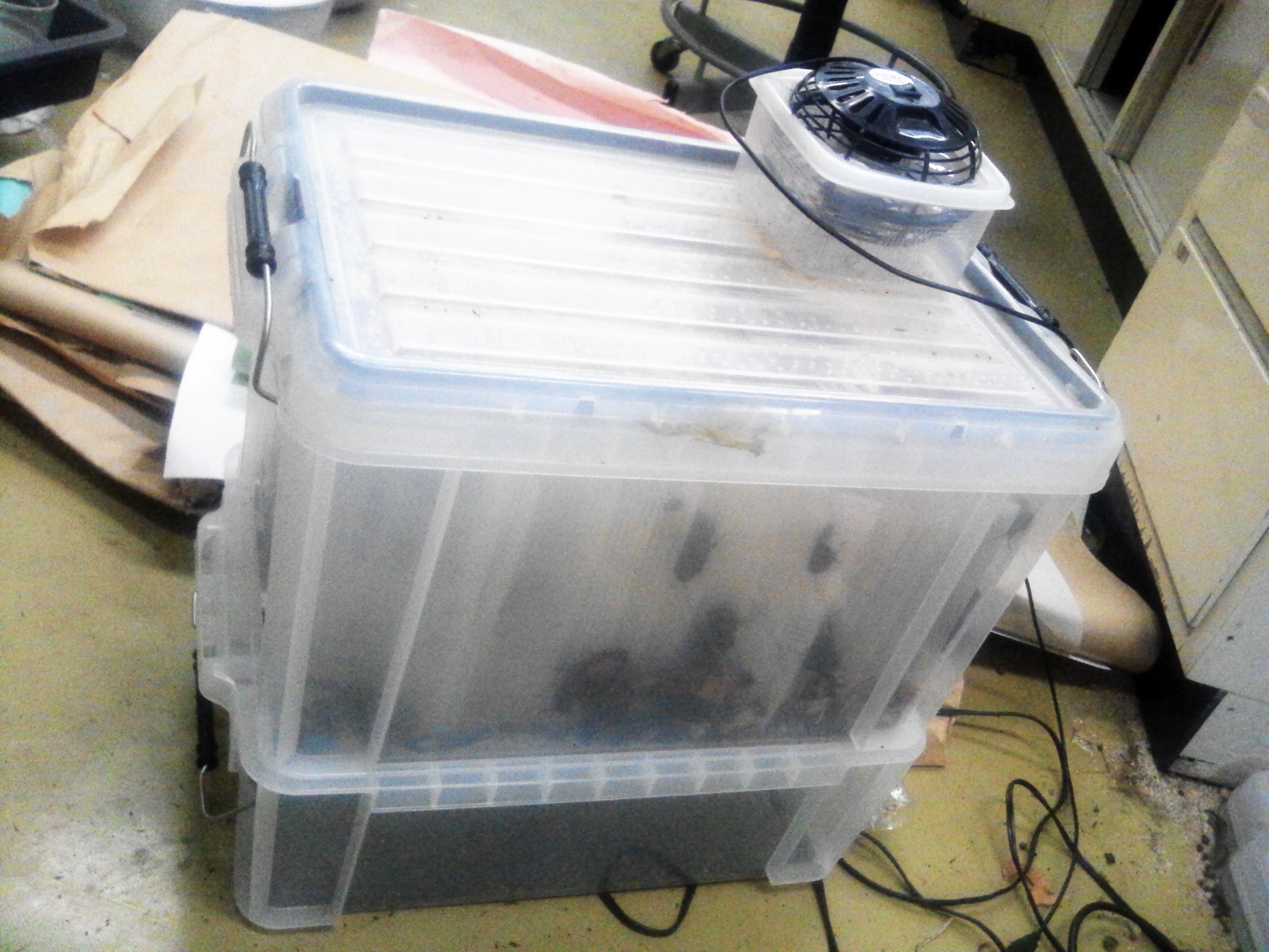 乾燥したフンが続々と貯まる構造になり、フンの測定も容易になりました。