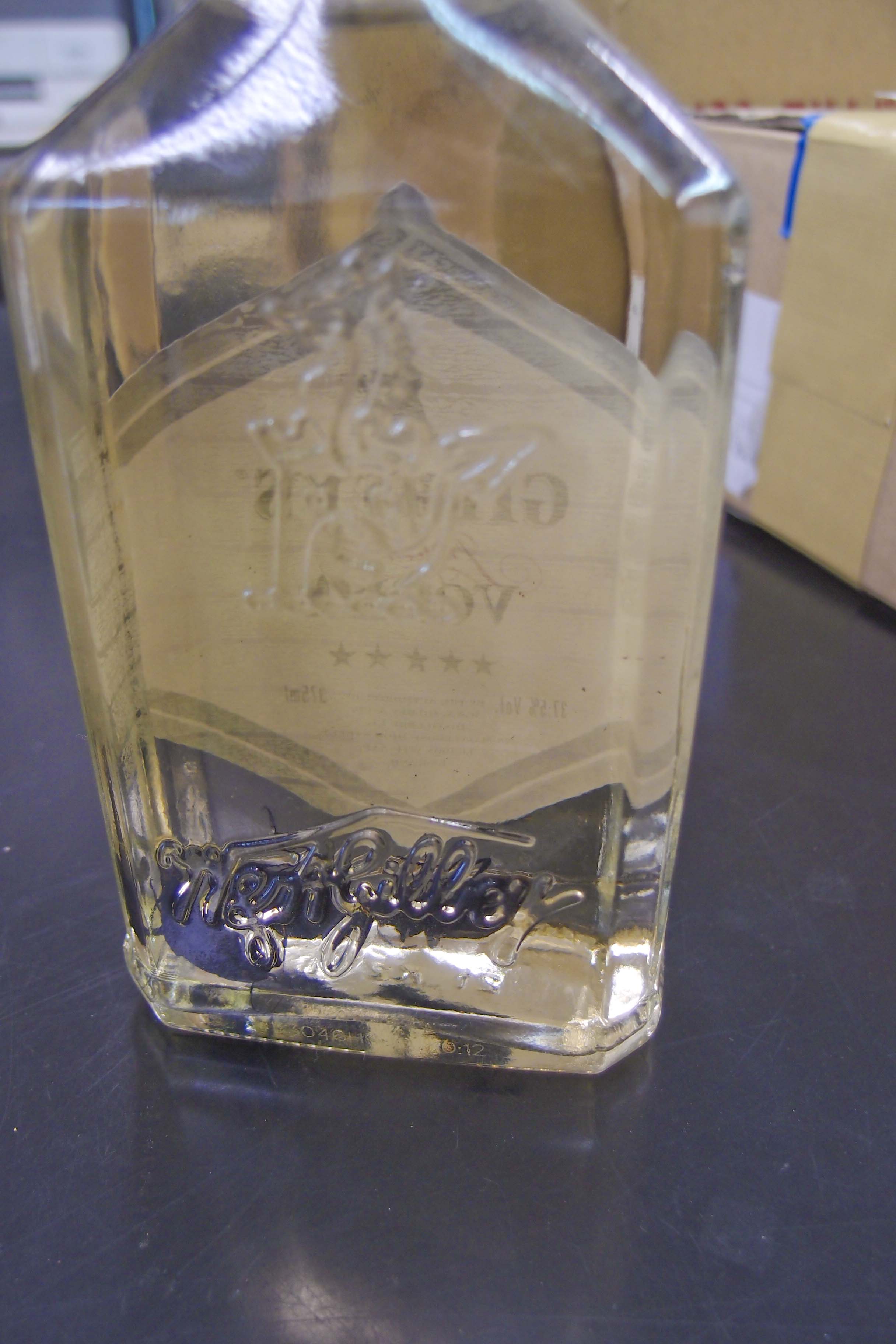 3頭のエゾカタビロオサムシを375mlのウォッカに分散させました。