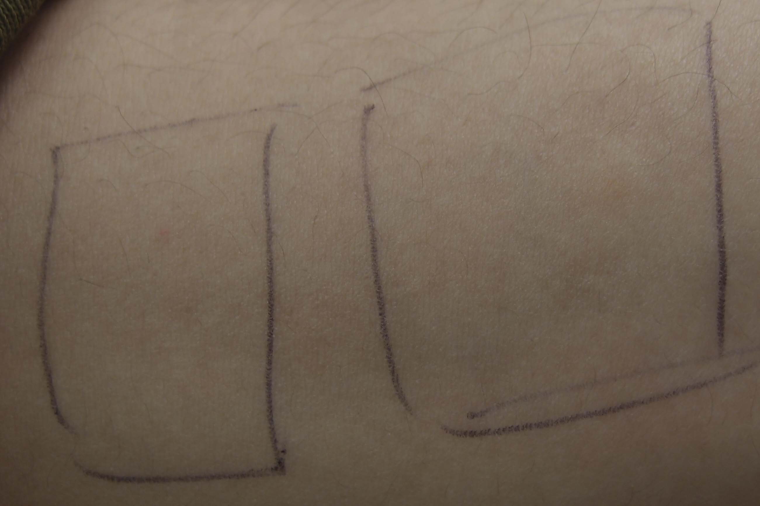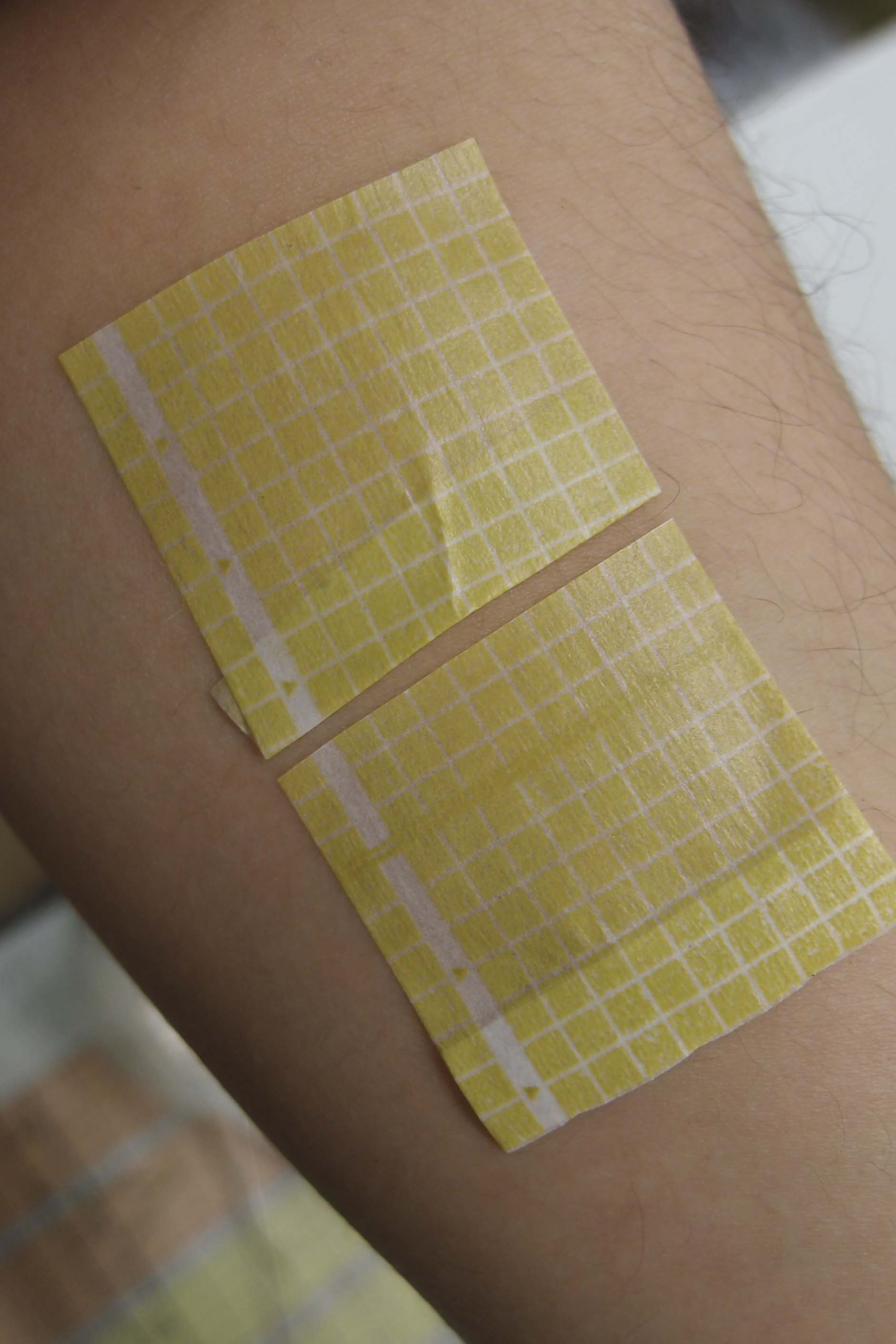 そのまま前腕の内側、パッチテストをする位置に。