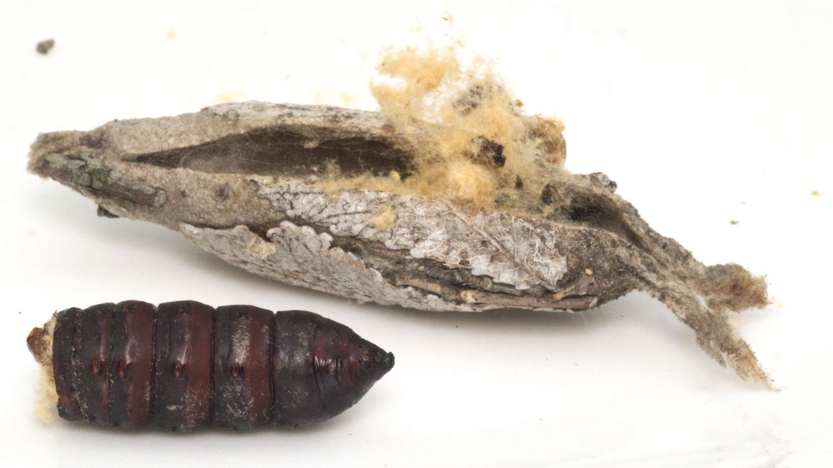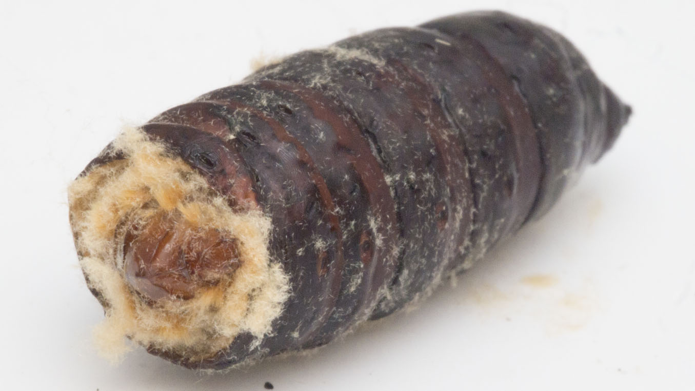 蛹の殻の残りを切り開く。皮が薄く、傷つけてしまった。