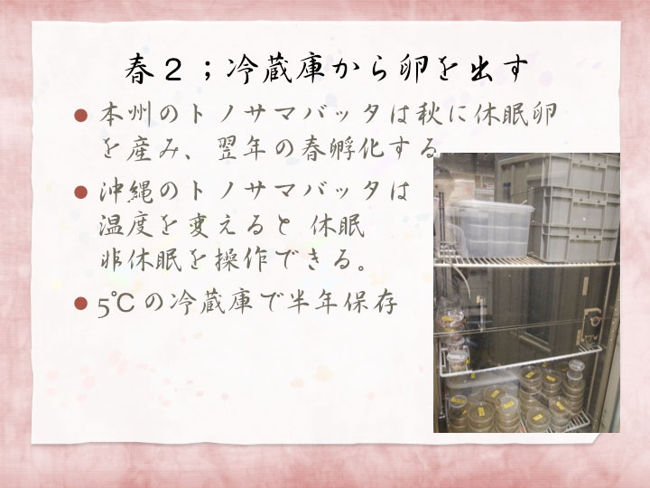 バッタの休眠卵は保存が効くので、好きな時に養殖を開始できます。