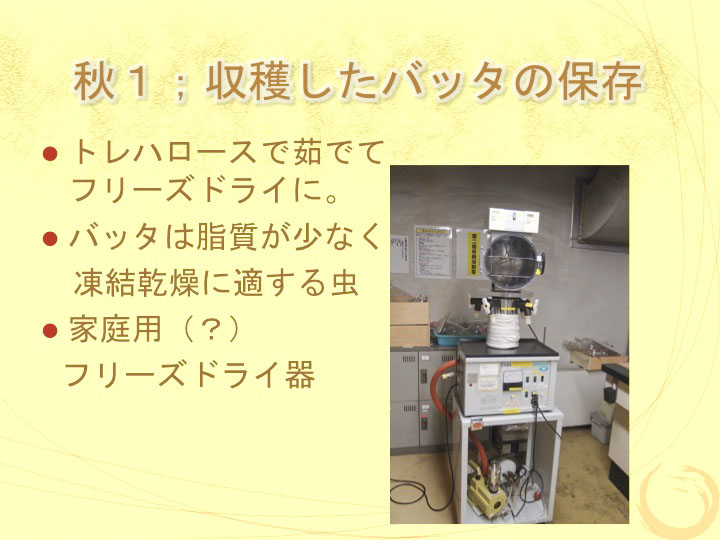 一方で、カミキリムシなどの脂質の多い幼虫はフリーズドライをしても