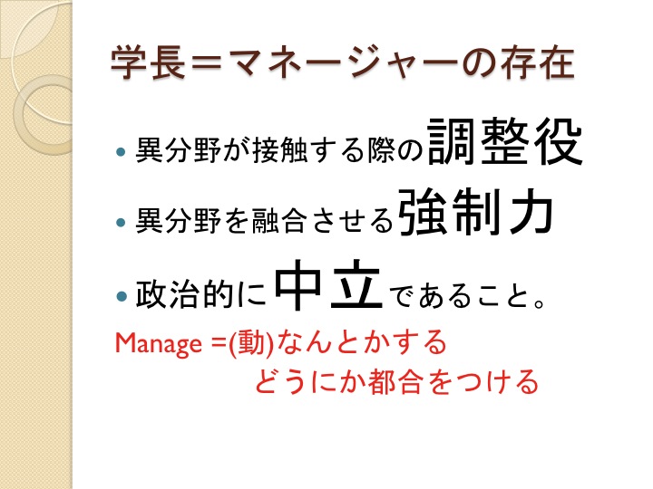 中立で強力なマネージャー、学長がいたことで